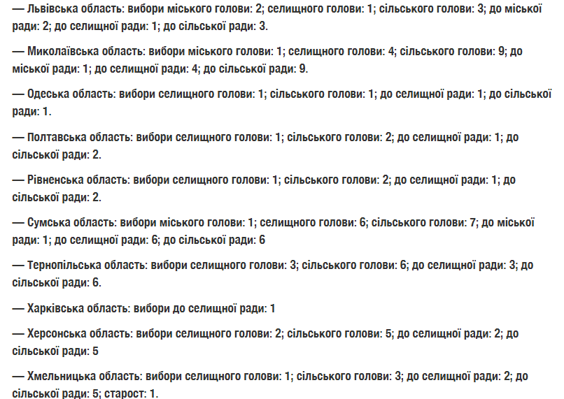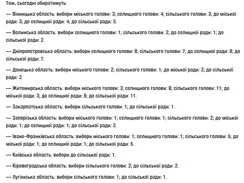 Это голосование поможет избрать 76 сельских голов, 46 голов поселков, 21 мэра, а также управленцев в соответствующие местные советы.