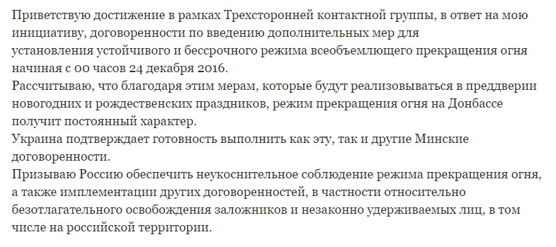 Порошенко довольно резко выступил с призывом к властям России строго соблюдать режим остановки огня и все договоренности по обмену украинских солдат, которые попали в плен к террористам "ДНР" на Донбассе и в России.