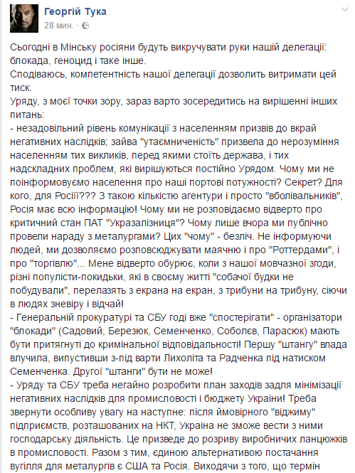 Блокада Донбасса и “национализация”: Тука призывает СБУ, ГПУ и Гройсмана к активным действиям, ждать больше невозможно