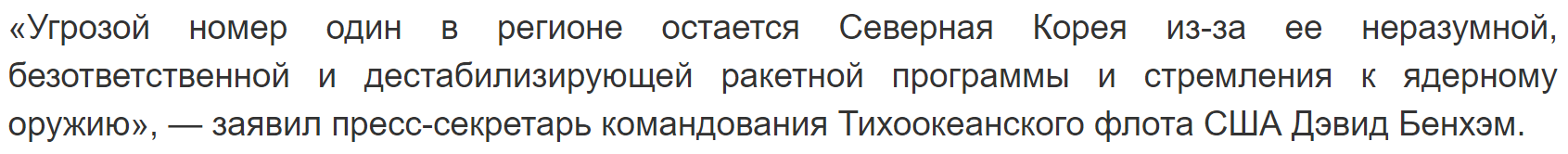 Ударная группа военно-морских сил США направлена в район корейского полуострова и призвана дать силовой ответ на наращивание военного и ядерного потенциала Северной Кореей.