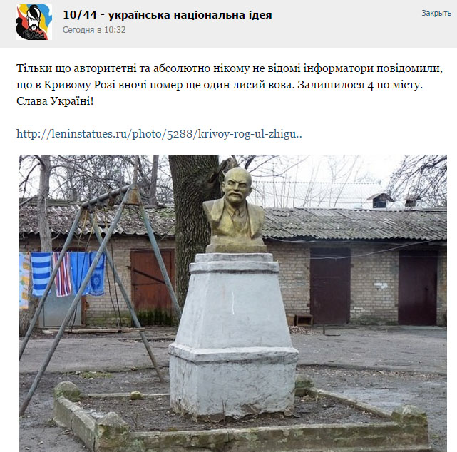 Отметим, предыдущий памятник вождю был повален в ночь с 1 на 2 октября в Кривом Роге в Центрально-Городском районе по ул.Ленина.