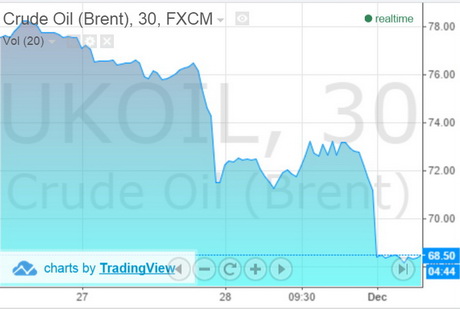 В понедельник, 1 декабря, началось новое резкое снижение биржевых цен на нефть.