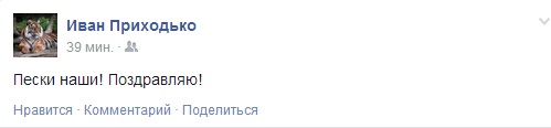 "Пески наши! Поздравляю", - написал Приходько у себя в Facebook.