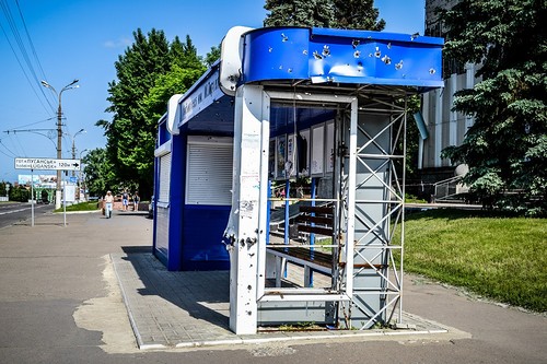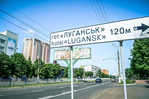 Общее впечатление Город находится в запущенном состоянии, что, впрочем, и неудивительно. Ямы на дорогах, засыпаемые щебенкой, разбитые дома, закрытые магазины. Примерно с трех-четырех часов дня жизнь на улицах почти замирает и редко встретишь не только машины, но и людей. Собственно говоря, комендантский час действует до сих пор и приехав в час ночи на вокзал, уйти с него нельзя. Темнота и фары патрульных машин милиции ЛНР. Впрочем, если очень нужно, то можно включить аварийки и ехать на небольшой скорости, объясняясь чем-то важным.