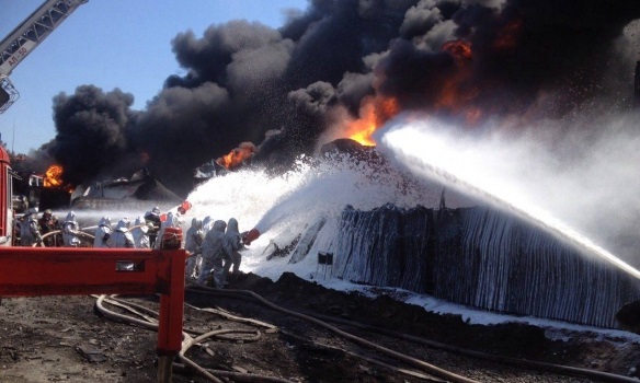 На нефтебазе под Киевом продолжают тушить пожар, на этот раз пеной.