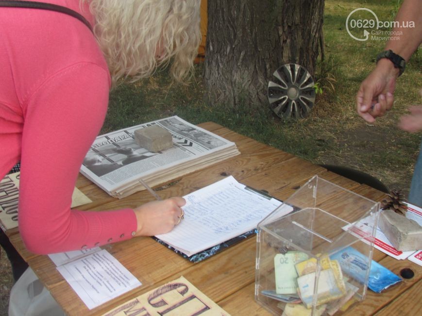 В Мариуполе возле здания сгоревшего городского совета митингуют против проведения местных выборов, которые назначены на осень текущего года.