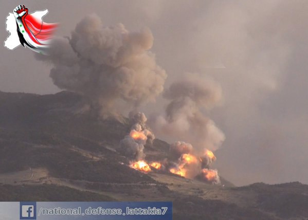 Россия применяет свои огнеметные системы против бойцов Сирийской Свободной Армии в провинции Латакия, в Сирии.