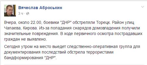 Боевики "ДНР" обстреляли жилые районы Торецка - Аброськин