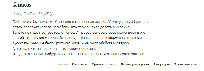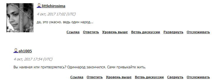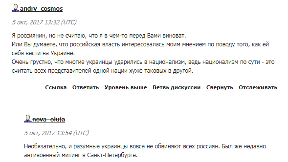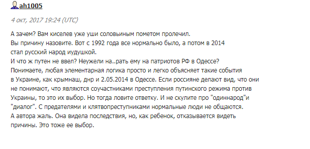 И хотя автор старательно вычищала неугодные комментарии и блокировала авторов, которые писали нелицеприятные вещи о России и ее президенте, множество граждан Украины все же высказали свою точку зрения. Хотя с автором согласились многие "по обе стороны баррикад": время для разговоров и объяснений действительно закончилось.