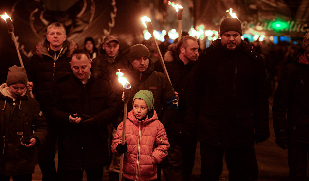 "Сегодня на моих глазах на Крещатике человек заговорил на русском языке, и тут же откуда-то появились люди в вышиванках, побросали хлеб, отобранный у голубей и на глазах у всех изрубили его нагайками с криками: "Слава Украине! За Бандеру! Москаляку на Гиляку!"" - иронизирует он.
