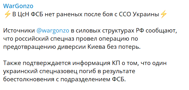 Более того, россияне утверждают, что якобы в результате операции погиб украинский спецназовец во время боевого столкновения с ФСБ.
