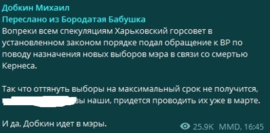 Известно, что Харьковский горсовет подал в ВР обращение о назначении новых выборов мэра. По предварительным данным, они состоятся уже в марте нынешнего года.