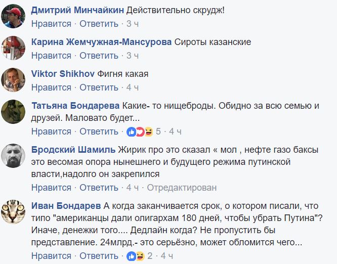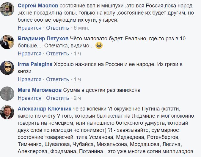 Цифра в 24 миллиарда долларов общего состояния совсем не впечатлила россиян в соцсетях. Они в большинстве своем уверены, что реальные доходы в 10, а то и 100 раз выше.