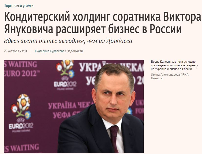 Бывший соратник бежавшего Виктора Януковича, владелец фабрики “Конти” Борис Колесников ведет переговоры о покупке кондитерской фабрики “Красная заря” в Иванове.