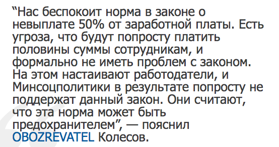 Еще одно нововведение — на уровне закона разрешить украинцам игнорировать работу в том случае, если им не платят зарплату.