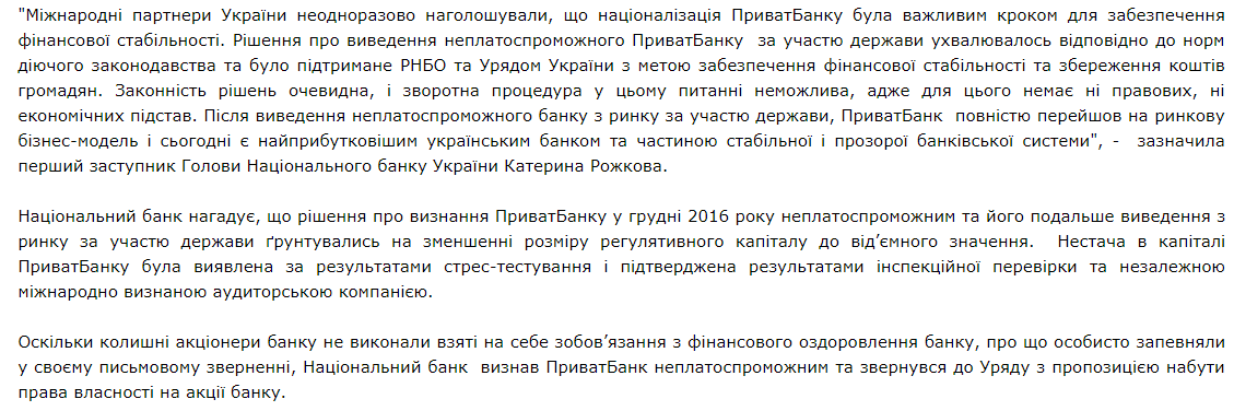 Ранее Окружной административный суд Киева удовлетворил иск Игоря Коломойского к Национальному банку и Кабинету министров о национализации "Приватбанка" и признал его национализацию незаконной.