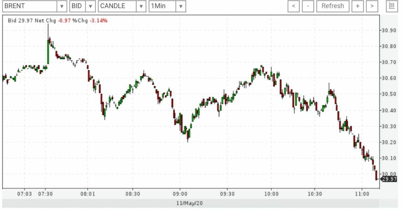 Цена на нефть 11 мая: Brent упала ниже 30 за баррель - ситуация неопределенная