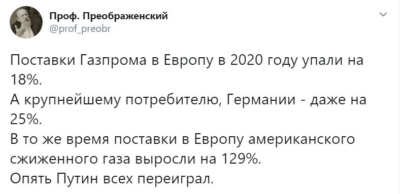 В то же время поставки в Европу американского сжиженного газа выросли на 129%.