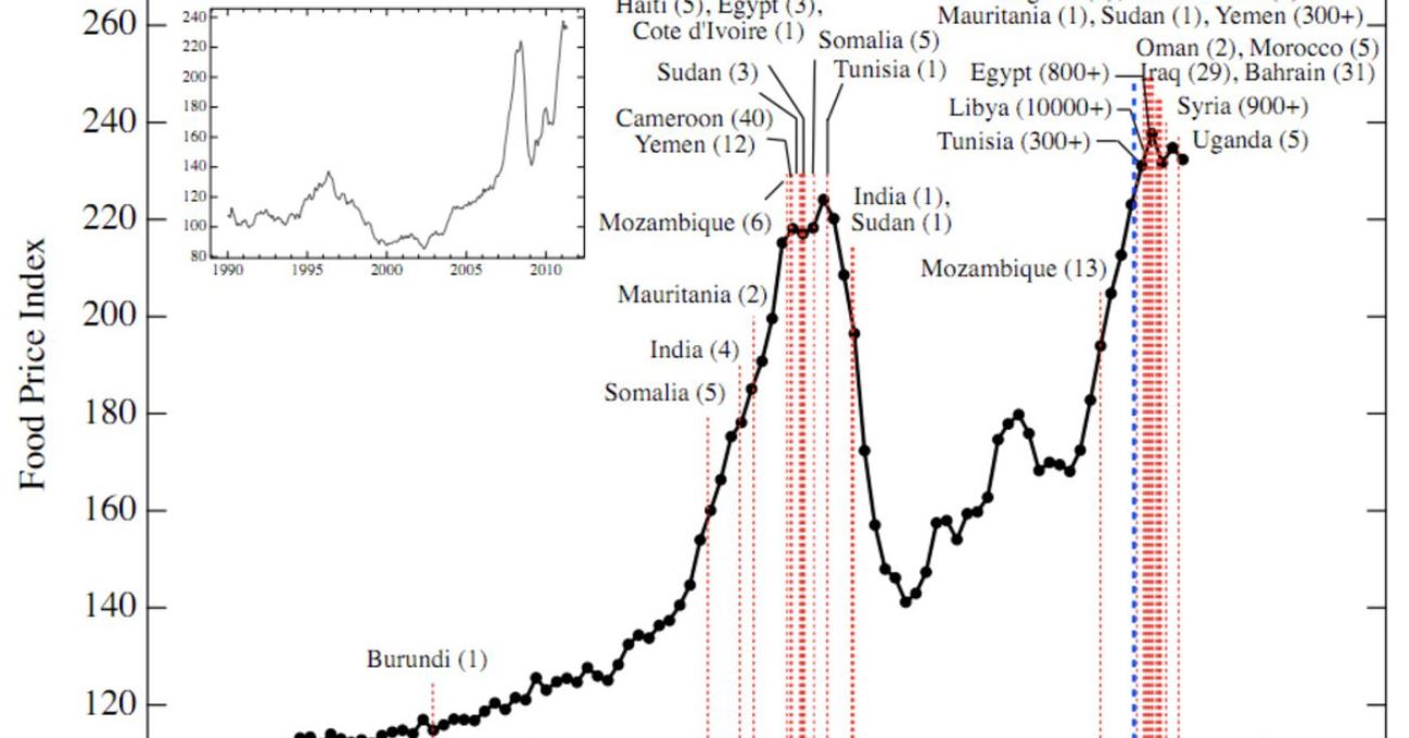 Большие мировые цены на продовольствие исторически связаны с волнами беспорядков из-за взаимодействия продовольственных бунтов и уже имеющегося социального напряжения. В прошлом году подобные протесты, связанные с провизией, возникли в Южной Африке, Колумбии, Нигерии, Судане, Бразилии и др. FAO не ждет, что обстановка улучшится в этом году. Но если РФ вторгнется в Украину, ситуация окажется патовой.
