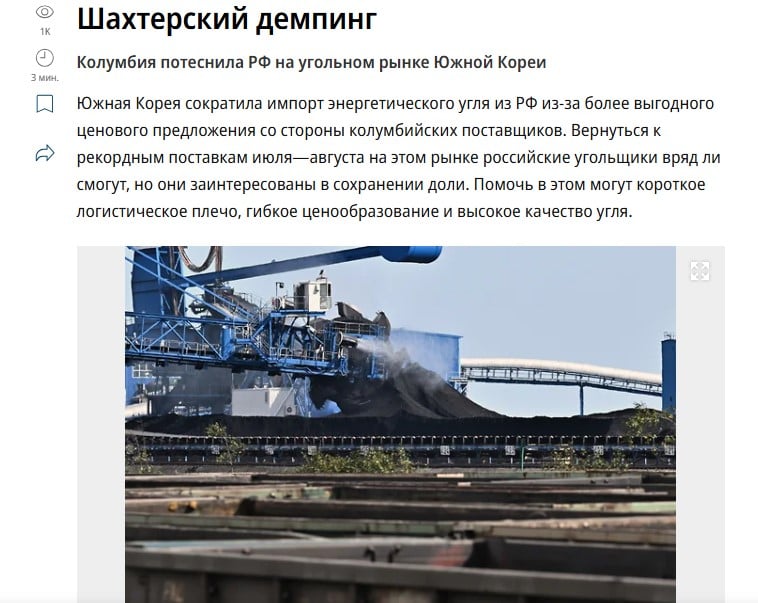 Партнер NEFT Research Александр Котов считает, что вернуть летние объемы экспорта России уже не удастся. По его словам, корейские компании близки к исчерпанию внутренних лимитов на закупку российского угля. Формальных ограничений нет, но государственные трейдеры придерживаются рекомендованных рамок.