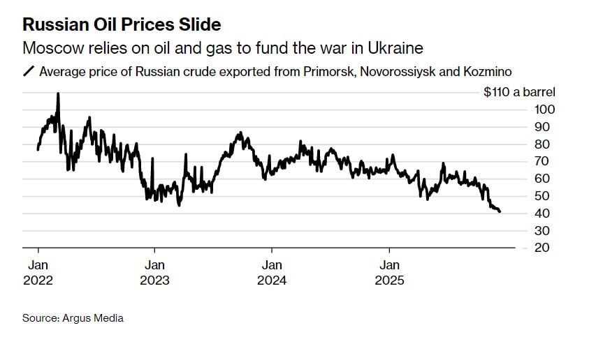 Доходы российского бюджета напрямую зависят от цены отгрузки нефти в портах. При текущих уровнях — около 40 долларов за баррель — нефтяные поступления уже не могут компенсировать военные расходы и растущие обязательства государства.