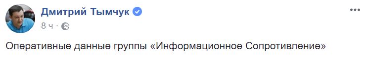 Об этом сообщил координатор группы “Информационное Сопротивление”, депутат Верховной рады Дмитрий Тымчук, передает “Диалог.UA”.