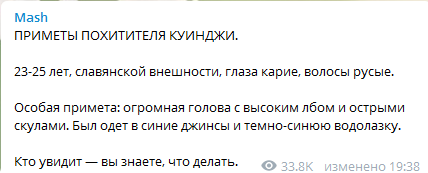 Согласно имеющейся информации, похищение обошлось без масок, стрельбы или хитроумного взлома музейной сигнализации. Молодой человек, которого сейчас разыскивает вся полиция Москвы, появился в зале в униформе музейного работника, спокойно подошел к полотну, вынул его из рамы и удалился. Смотрительница и многочисленные посетители даже не сразу поняли, что произошло "ограбление века" – цена некоторых полотен Архипа Куинджи (кстати, уроженца Мариуполя на Донетчине) превышает три миллиона долларов.