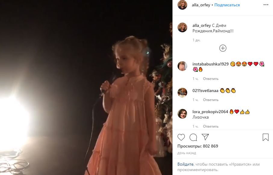Во время исполнения песни "Миллион алых роз" Лиза подбадривала публику словами "все вместе", а в конце композиции сказала: "Поздравляем, Раймонд, с Днем рождения". Подписчики Аллы Борисовны отметили, что Лиза обладает невероятным голосом, который, вероятно, передался ей от мамы.