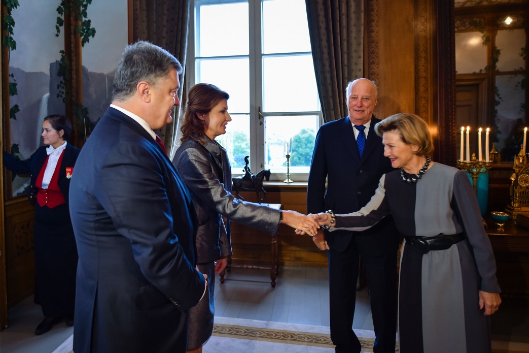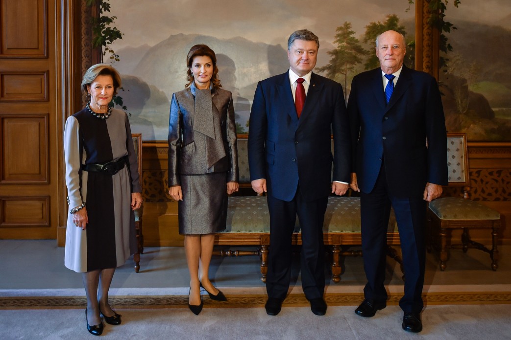 Президент Украины Петр Порошенко вместе со своей женой Мариной Порошенко приехал в Норвегию с официальным визитом. Украинская пара встретилась с норвежской королевской четой королем Харальдом V и его супругой – королевой Соней. В ходе королевской аудиенции монарх заметил, что данная встреча исторически очень важно, поскольку это первый официальный визит главы украинского государства в Королевство Норвегия.