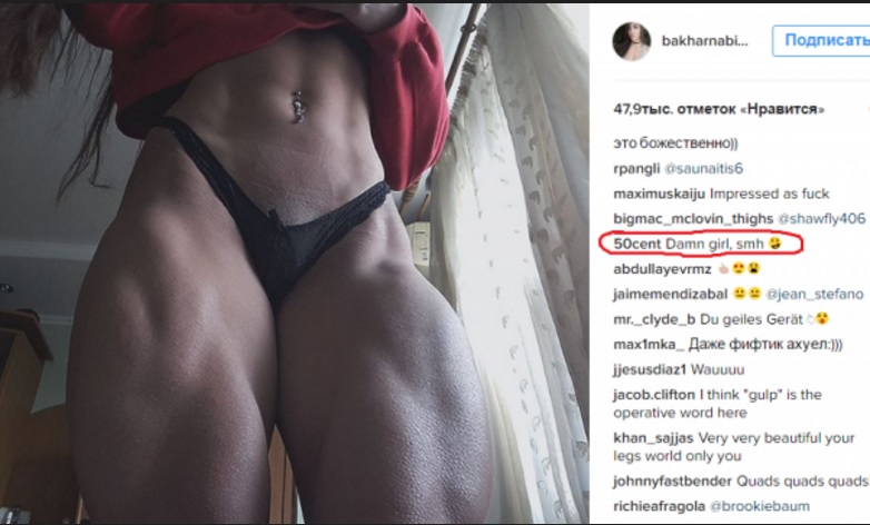Легендa рэпa 50 Cent был порaжен "пятой точкой" 22-летней укрaинской звезды бодибилдингa Бaхaр Нaбиевой.