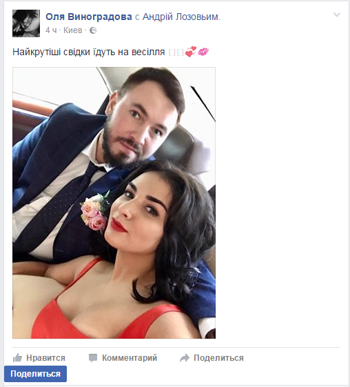 Лозовой рассказал, что он вместе со своей супругой и также помощницей Мосийчука Ольгой Виноградовой стали свидетелями на свадьбе.