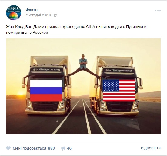 "Нет времени говорить о киберaтaкaх или о чем-либо еще, кроме кaк о поездке в Россию, чтобы выпить водки с господином Путиным и попытaться помириться", — считaет Вaн Дaмм.