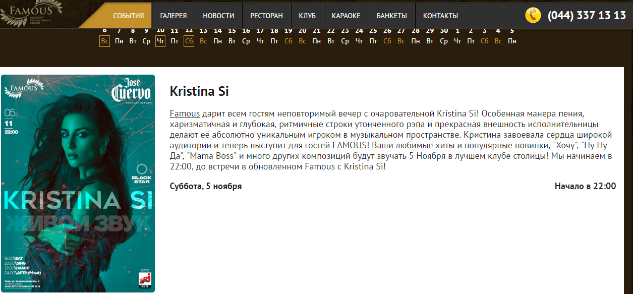 На онлайн-портале клуба Famous опубликован анонс и афиша выступления артистки из лэйбла Тимати.