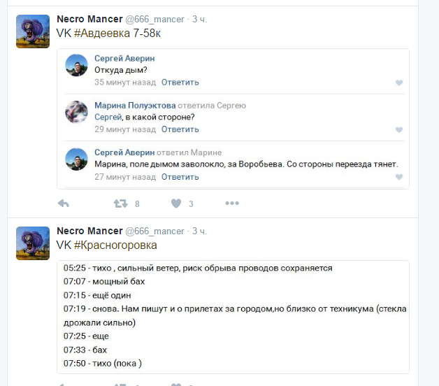 С раннего утра мирные жители гадают, отчего так неспокойно. По звуку разрывы напоминают прилеты, но где именно идут бои, горожане сказать не могут – из-за сильного ветра невозможно определить направление. В социальных сетях пишут, что шумно в Кировском, Ленинском районах Донецка, Марьинке, Красногоровке, Авдеевке и Макеевке.