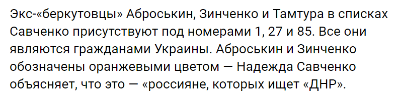 Савченко упрекнули и в том, что на данный момент нет законных оснований для обмена бывших "беркутовцев": им не вынесен приговор по преступлениям на Майдане, однако эти трое также не имеют никакого отношения ни к "ДНР", ни к "ЛНР", ни к войне на Донбассе.