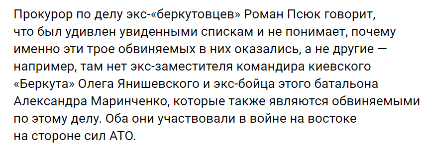 Подозрительность списка появилась и у прокурора по делу бывших "беркутовцев", который удивлен его составом.