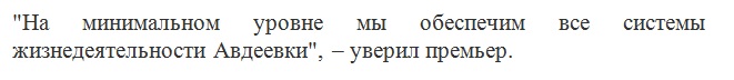По словам премьер-министра, в Авдеевке развернули городок обогрева, а также работают социальные службы. Он подчеркнул, что город обеспечен всем необходимым.