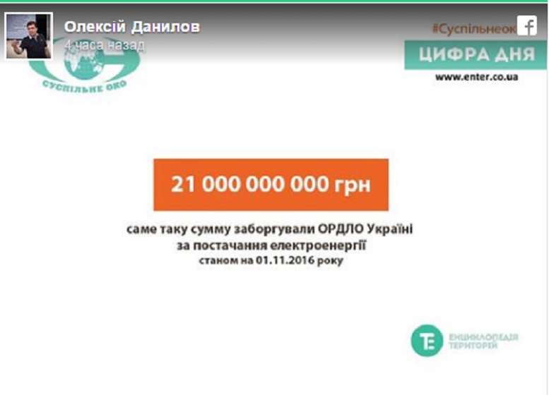 Сумма долга на сегодняшний день катастрофическая, о ней в Facebook напомнил бывший мэр Луганска, и экс- глава Луганской ОГА Алексей Данилов.