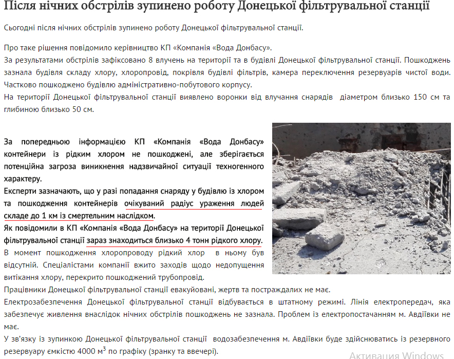 МинАТО сообщает, что во время обстрела контейнеры с жидким хлором не повреждены, однако опасность смертельной угрозы сохраняется, пишет “Диалог.UA”. Сейчас работа станции временно приостановлена: руководство компании не видит возможностей для нормального функционирования предприятия.