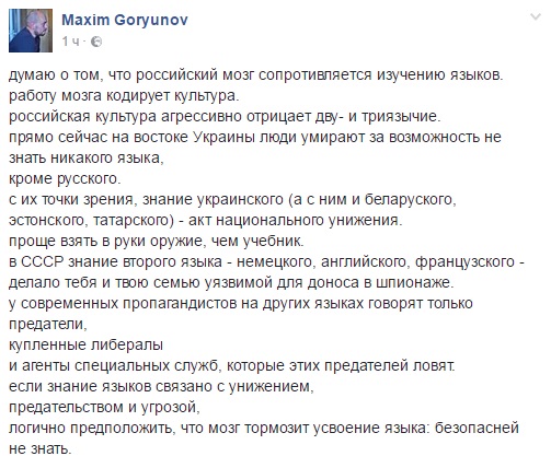Прямо сейчас на востоке Украины люди умирают за возможность не знать никакого языка, кроме русского.