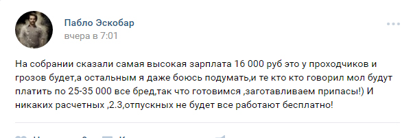“Так что готовимся, заготавливаем припасы!) И никаких расчетных, 2/3 отпускных не будет - все работают бесплатно!”