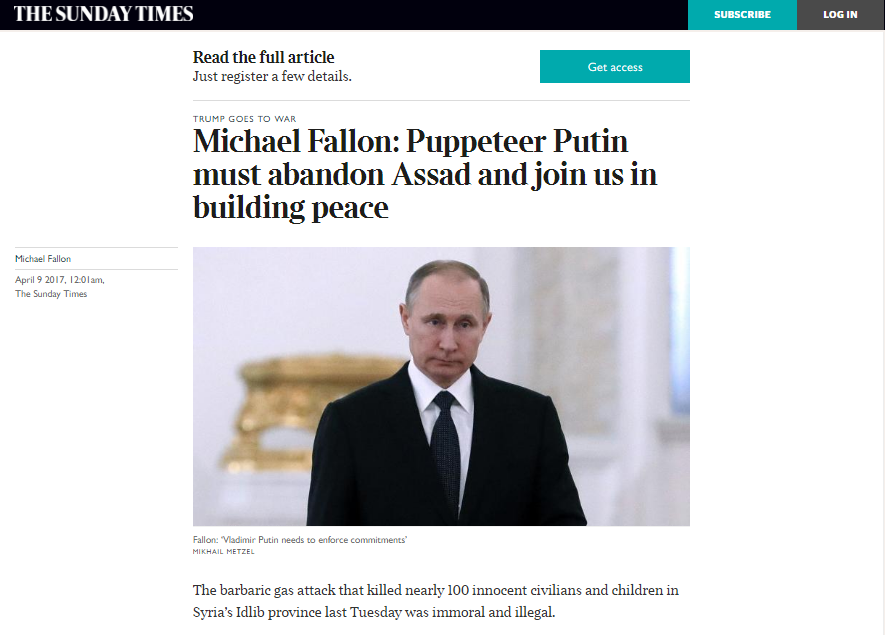 The Sunday Times пишет о том, как глава Минобороны Британии Майкл Фэллон обвинил Кремль в страшной химической атаке в провинции Идлиб, ведь именно РФ является союзником режима Башара Асада в Сирии.