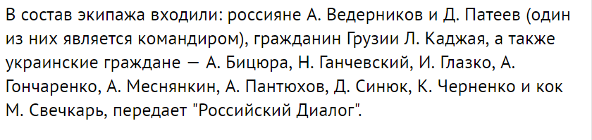 Пока точно известно, что российские спасатели смогли поднять на борт спасательного судна моториста из Украины Черненко. Он был госпитализирован в тяжелом состоянии с диагнозом переохлаждение.