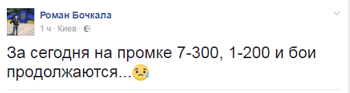 В то же время журналист Роман Бочкала сообщил о том, что бои под Авдеевкой продолжаются и сейчас. По его данным, в результате обстрелов были ранены семеро бойцов.