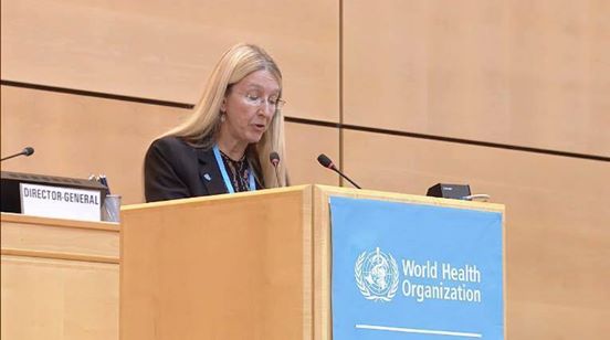 Прежде всего, я хочу поблагодарить доктору Чен за прекрасную работу выполненную в должности Генерального директора и его личную преданность делу. Под руководством доктора Чен действительно был достигнут значительный прогресс в сфере глобального здравоохранения. Я надеюсь, что ее преемник будет в дальнейшем развивать наработки, которые она оставляет после себя, продолжая, среди других вещей, основной процесс реформ, поможет Организации лучше подготовиться к сегодняшним и будущим задача глобального здравоохранения.
