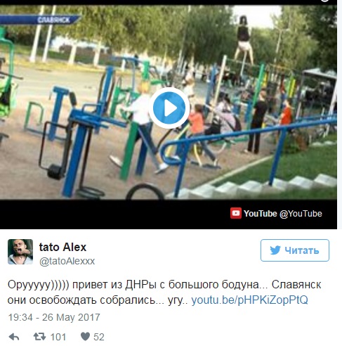 Оккупанты в своем пропагандистском сюжете заявили, что намерены "освободить" Славянск, чтобы "будущие жители" "орко-республики" могли бесплатно заниматься спортом на открытом воздухе при помощи спортивного оборудования, сообщает "Диалог.UA".