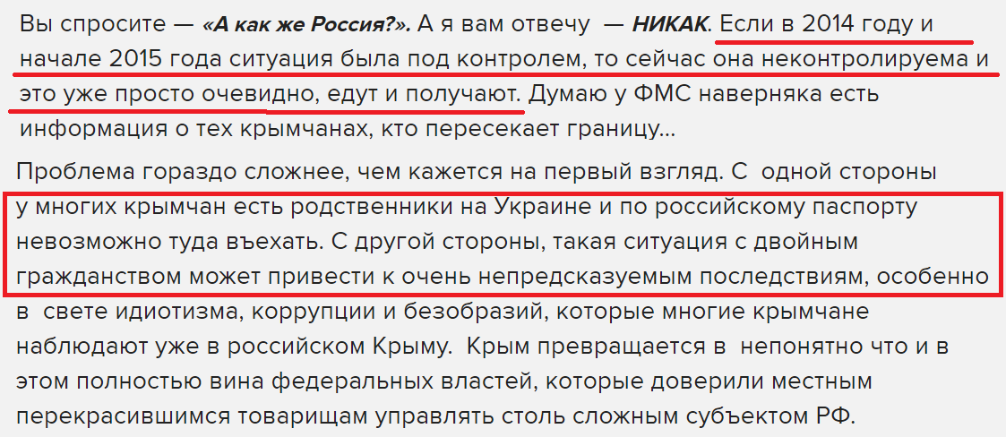 Он отмечает, что ситуация с предоставлением Украине безвиза оборачивается для России тяжелейшим ударом, так как жители полуострова массово оформляют биометрические паспорта Украины. Горный отметил, что за последние год новые украинские паспорта получили около 60 000 жителей Крыма.