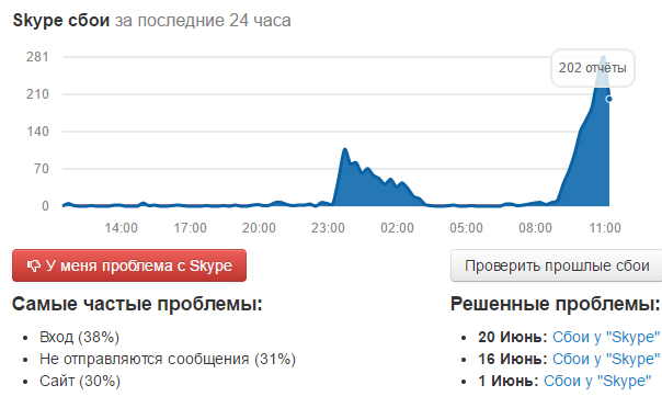 Проблемы в работе Skype: на что жалуются пользователи, карта сбоев