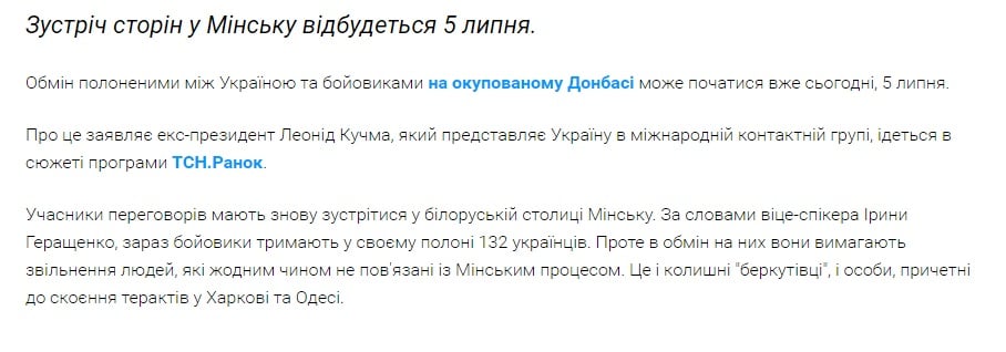 Сегодня, 5 июля, может начаться обмен пленными между официальным Киевом и боевиками из оккупированного Донбасса, сообщает "Диалог.UA".