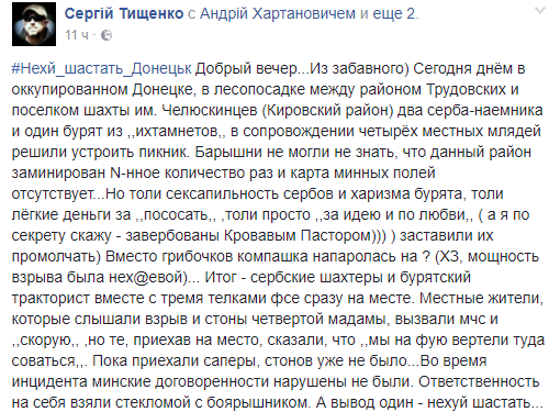 Во время "плотских утех" террористы псевдореспублики "ДНР" подорвались на минах: журналист Тищенко рассказал "горячие" подробности гибели на Донбассе боевиков из Сербии и РФ, а также их спутниц